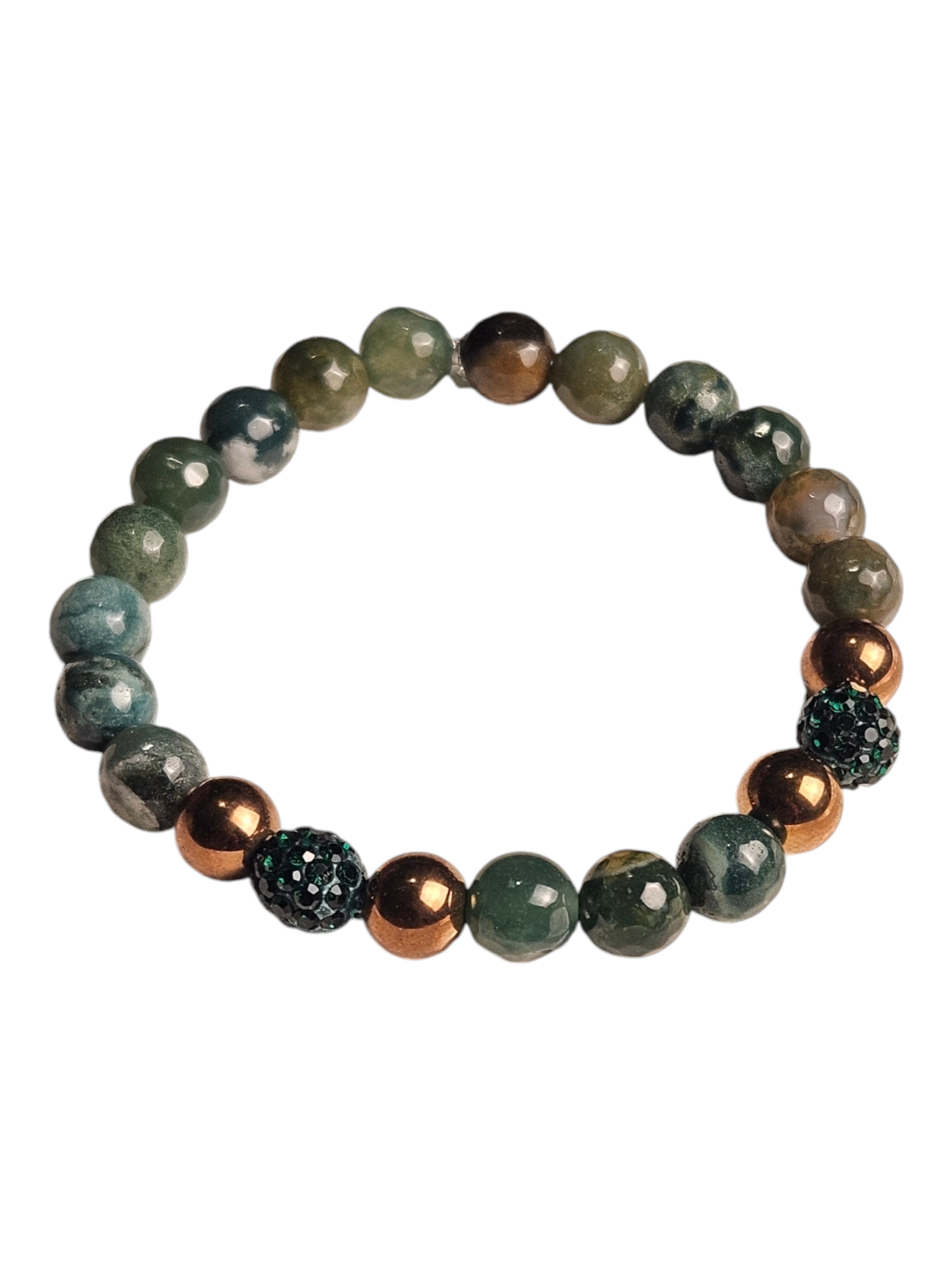 Tourmaline with Chocolate Brown Hematite and beautiful dark green rhinestones brings sophistication.