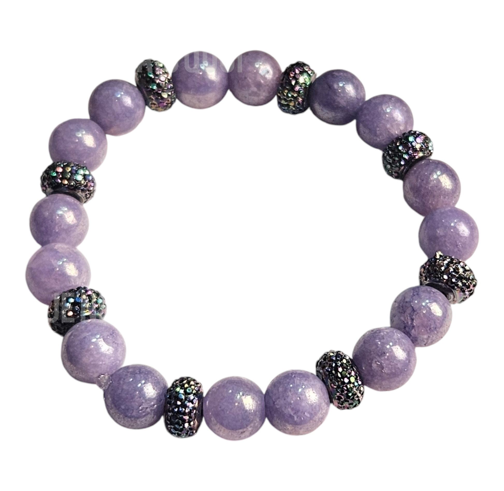 Made with high-quality natural stones Lavender Angelite and multicolored rhinestones.
