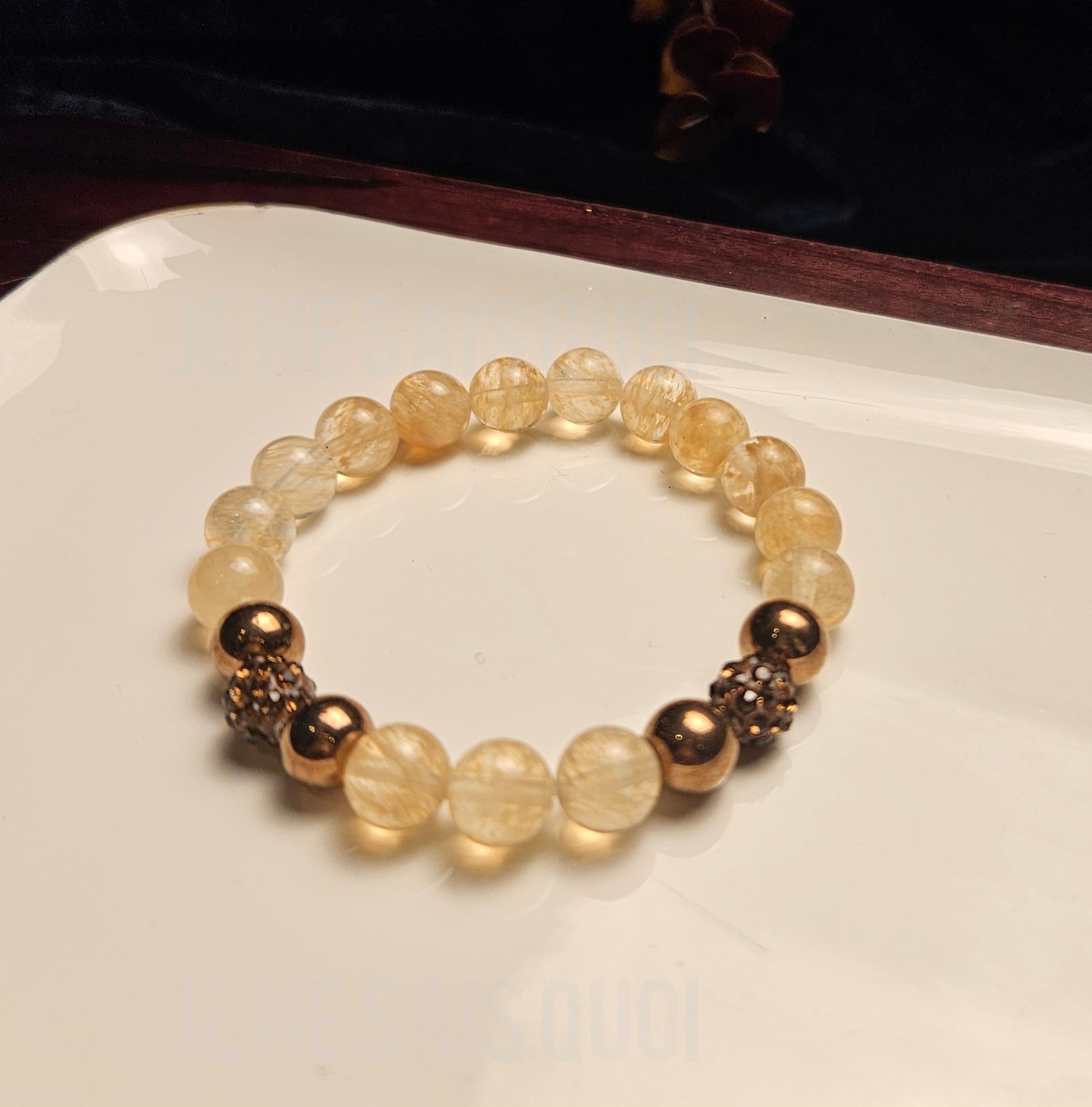 Made with high-quality natural stones - Citrine Quartz stone beautifully blended with light Topaz rhinestones and Chocolate Brown Hematite