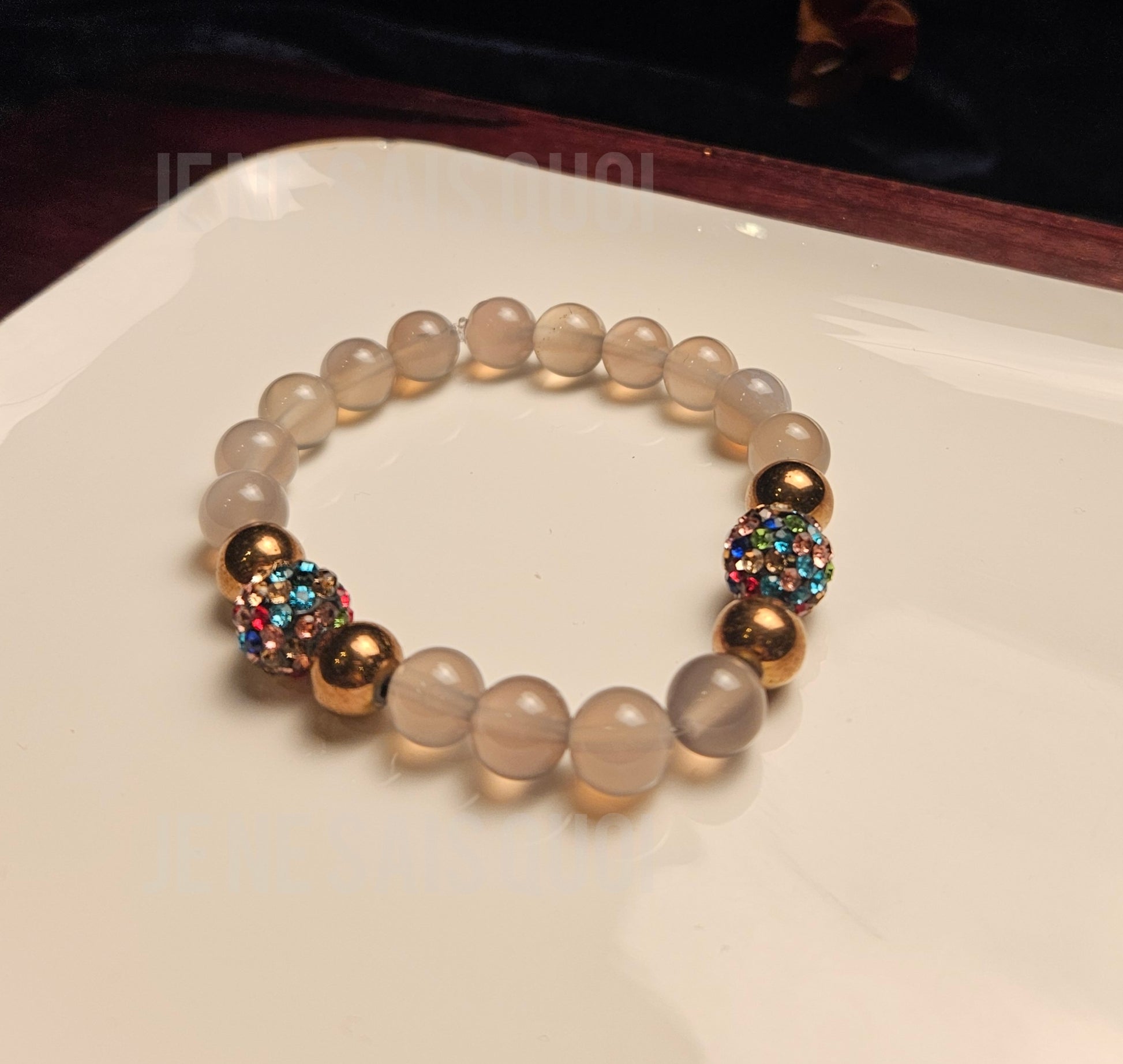 Made with high-quality natural stones - Beige stone beautifully blended with multicolor rhinestones bead & Chocolate Brown Hematite.