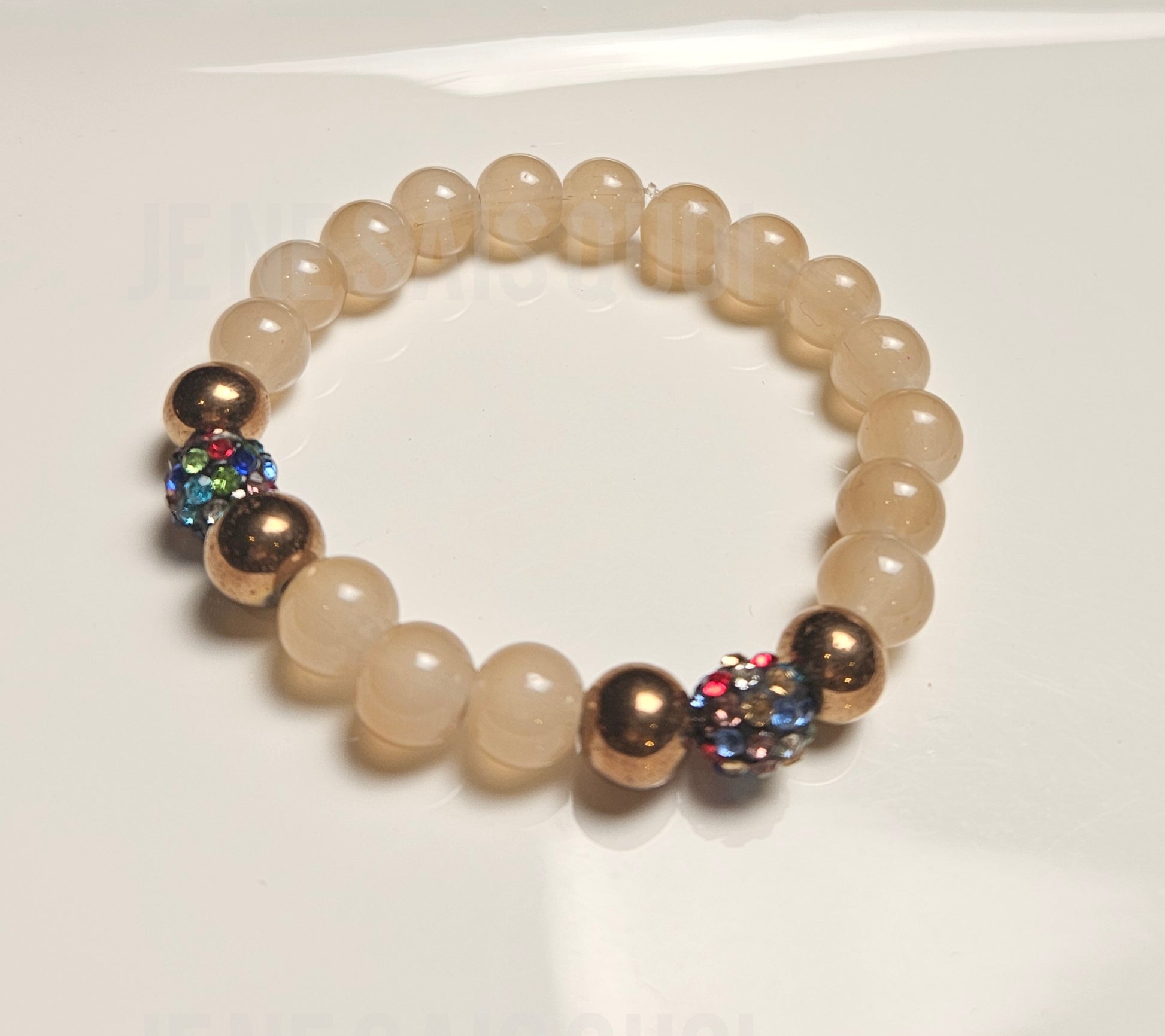 Made with high-quality natural stones - Beige stone beautifully blended with multicolor rhinestones bead & Chocolate Brown Hematite.